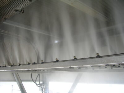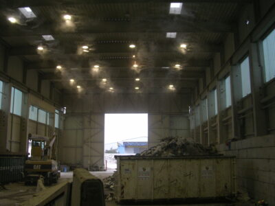 Durch unser Zentri-Jet Kühlsystem wird Staub dergestalt bekämpft, dass ein feiner Nebel die schwebenden Staubteilchen „ummantelt“, ihnen damit ein höheres Gewicht gibt und sie zum Absinken veranlasst, zudem fördert es auch die Adhäsion unter den Molekülen.